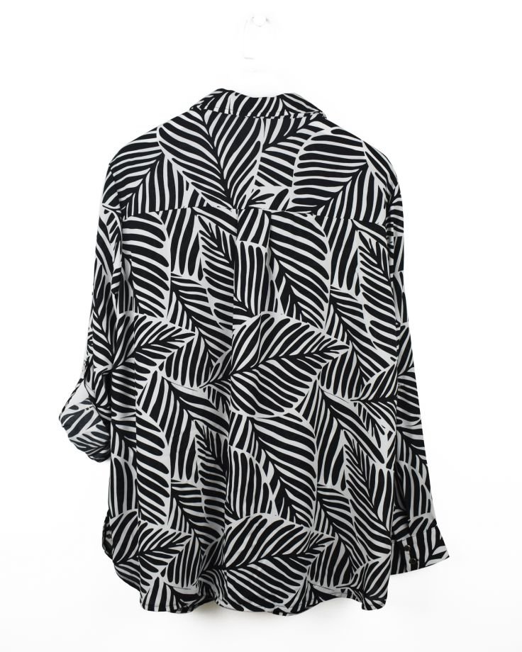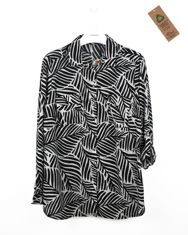 | TRIM WHEIGHT | FABRICATION | Recycle Polyester Crepe Look | FABRIC CODE | FABRIC COLOR | Black /White-AOP | FABRIC WEIGHT | 115 GSM | FABRIC COMPOSITION | 100% Recycle Polyester |