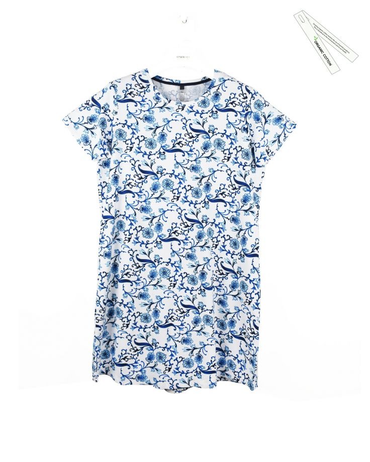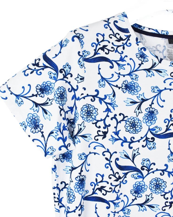 | TRIM WHEIGHT | FABRICATION | S/Jersey | FABRIC CODE | FABRIC COLOR | White AOP | FABRIC WEIGHT | 160 | FABRIC COMPOSITION | 95% Organic Cotton, 5% Elastane |