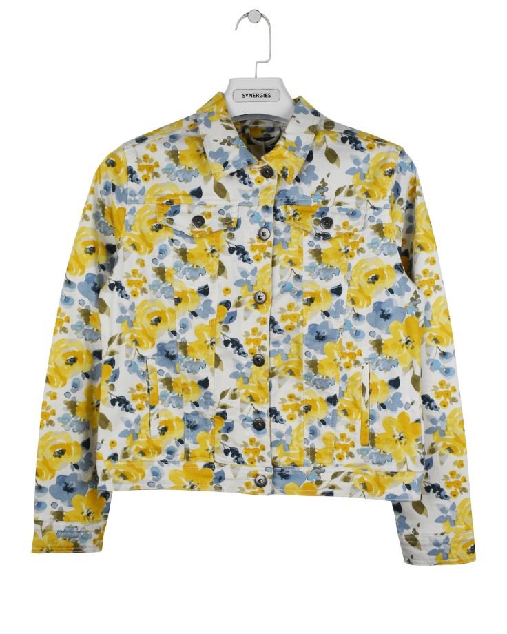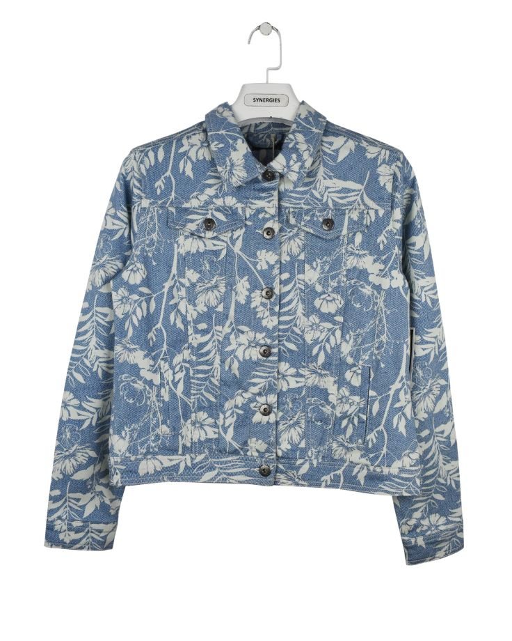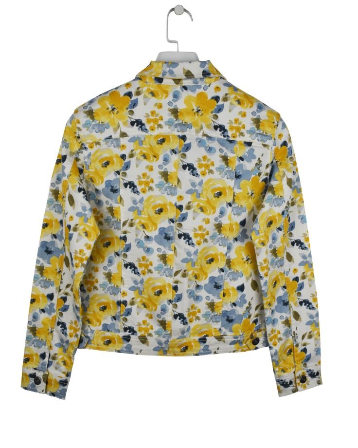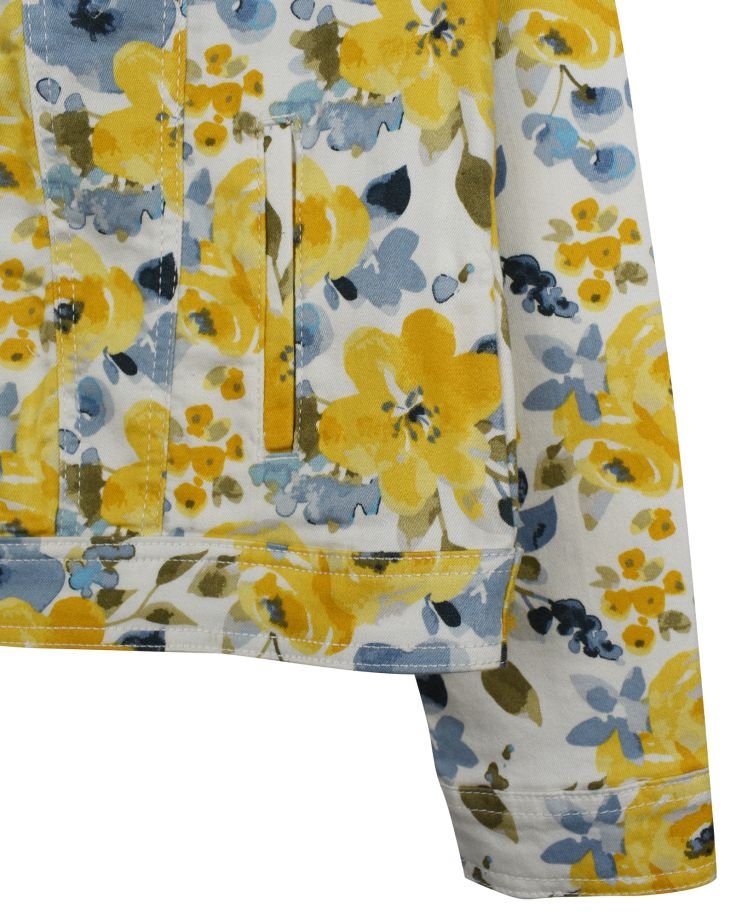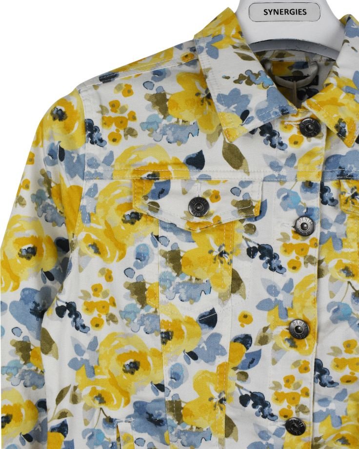 | TRIM WHEIGHT | FABRICATION | Twill 3x1 Stretch AOP | FABRIC CODE | FABRIC COLOR | White Flower AOP | FABRIC WEIGHT | 7.80 OZ | FABRIC COMPOSITION | 62% Cotton, 32% Polyester, 4% Viscose, 2% Elastane |