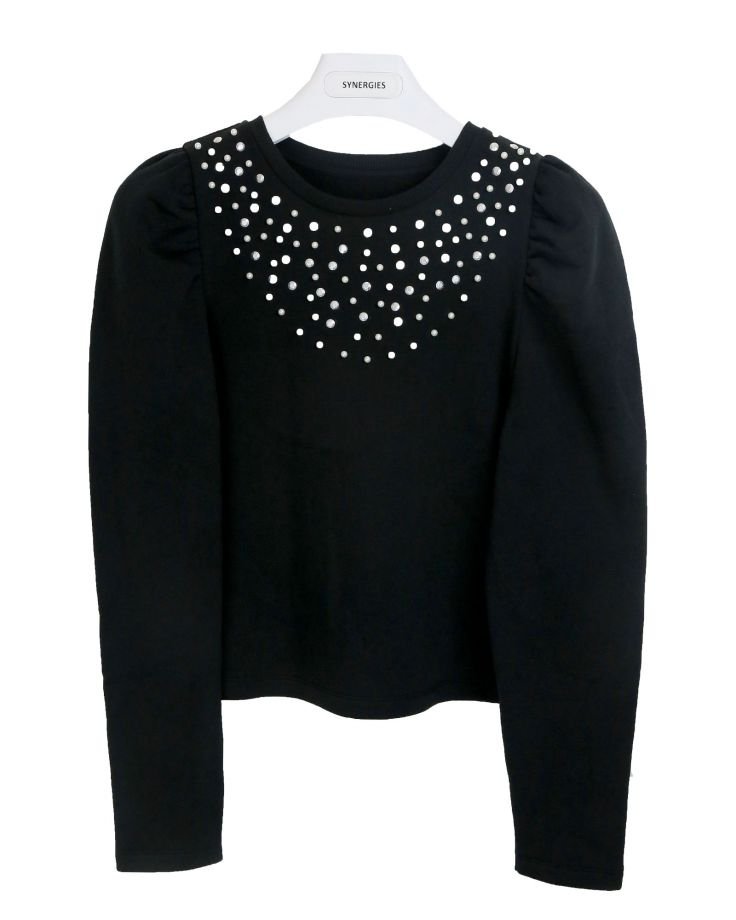 | STYLE DESCRIPTION | Cropped Top with Hot Fix Studs and Pearl Details | ||