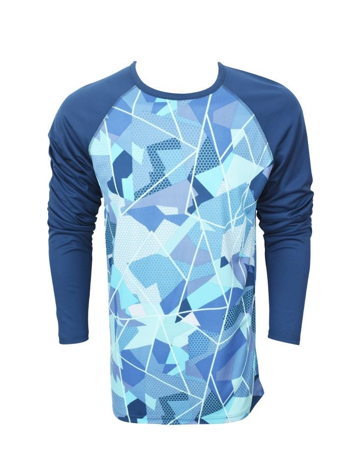 | TRIM WHEIGHT | FABRICATION | S/Jersey | FABRIC CODE | FABRIC COLOR | Blue AOP & Solid | FABRIC WEIGHT | 150-160 GSM | FABRIC COMPOSITION | 100% Recycle GRS Polyester Jersey Mesh |