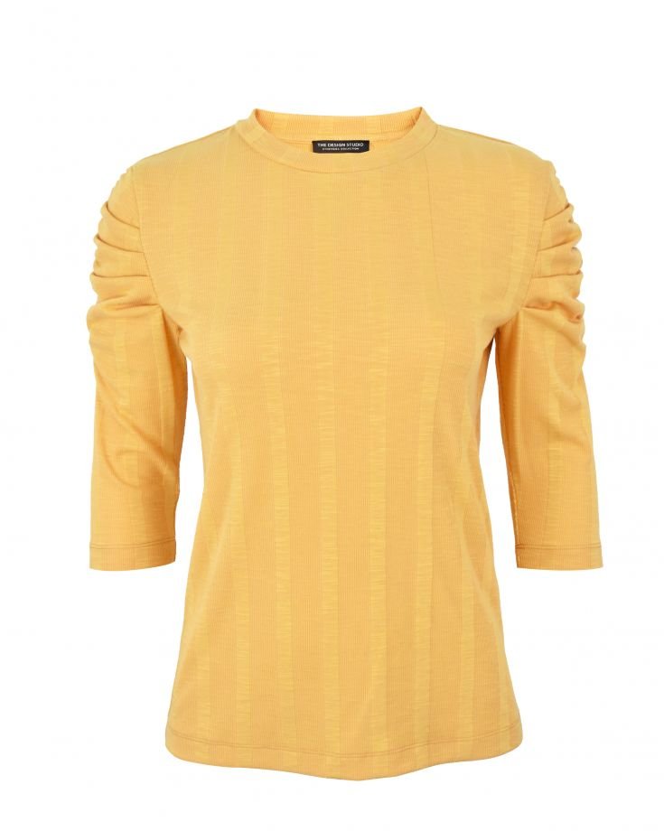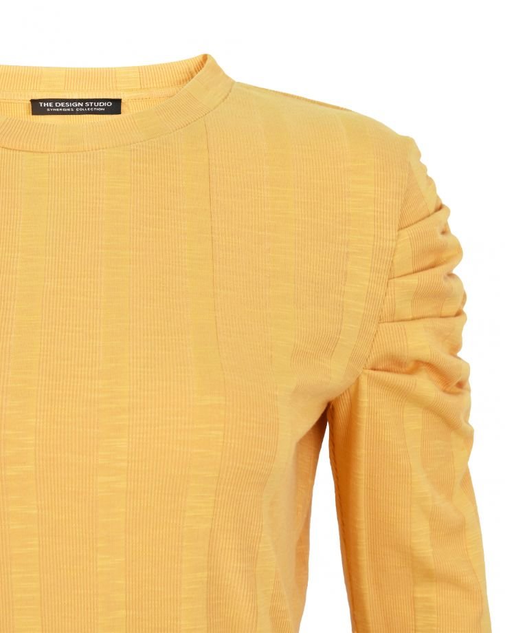| TRIM WHEIGHT | FABRICATION | Slub RIB | FABRIC CODE | FABRIC COLOR | Yellow | FABRIC WEIGHT | 300 GSM | FABRIC COMPOSITION | 80% Tetron 15% Rayon 5% Spandex |