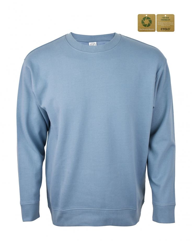 | TRIM WHEIGHT | FABRICATION | Fleece | FABRIC CODE | FABRIC COLOR | Stone Blue | FABRIC WEIGHT | 260 GSM | FABRIC COMPOSITION | 60% Recycle cotton 40% Recycle Polyester |