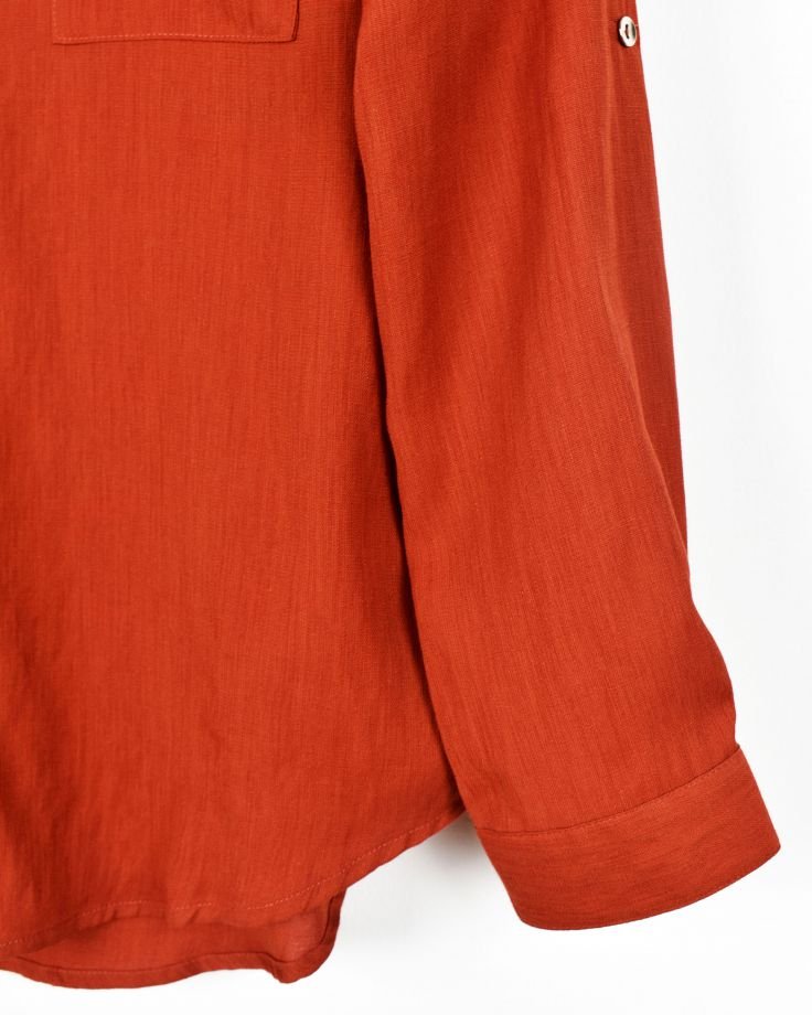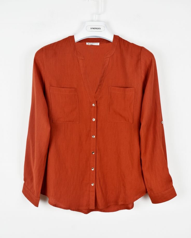 | STYLE DESCRIPTION | V-neck Shirt with Round Collar Long Sleeves & Turn-up Cuffs with Buttoned Details | ||
