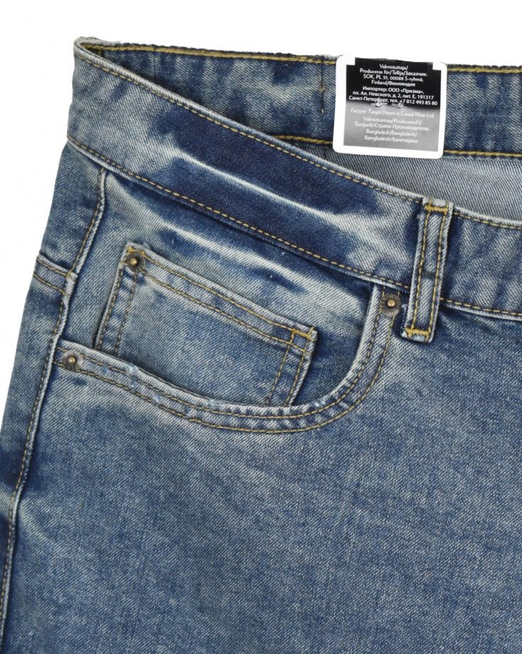 | TRIM WHEIGHT | FABRICATION | Denim | FABRIC CODE | FABRIC COLOR | T. Sininen | FABRIC WEIGHT | 10.75 OZ | FABRIC COMPOSITION | 70% Cotton 30% Polyester |
