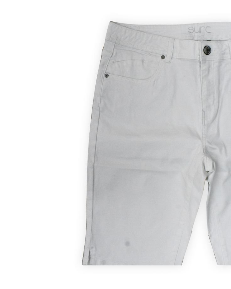 | TRIM WHEIGHT | FABRICATION | TWILL 3/1 RHT RFD | FABRIC CODE | FABRIC COLOR | GARMENT DYED WHITE | FABRIC WEIGHT | 7.90 OZ BW | FABRIC COMPOSITION | 98% COTTON , 2% SPANDEX |