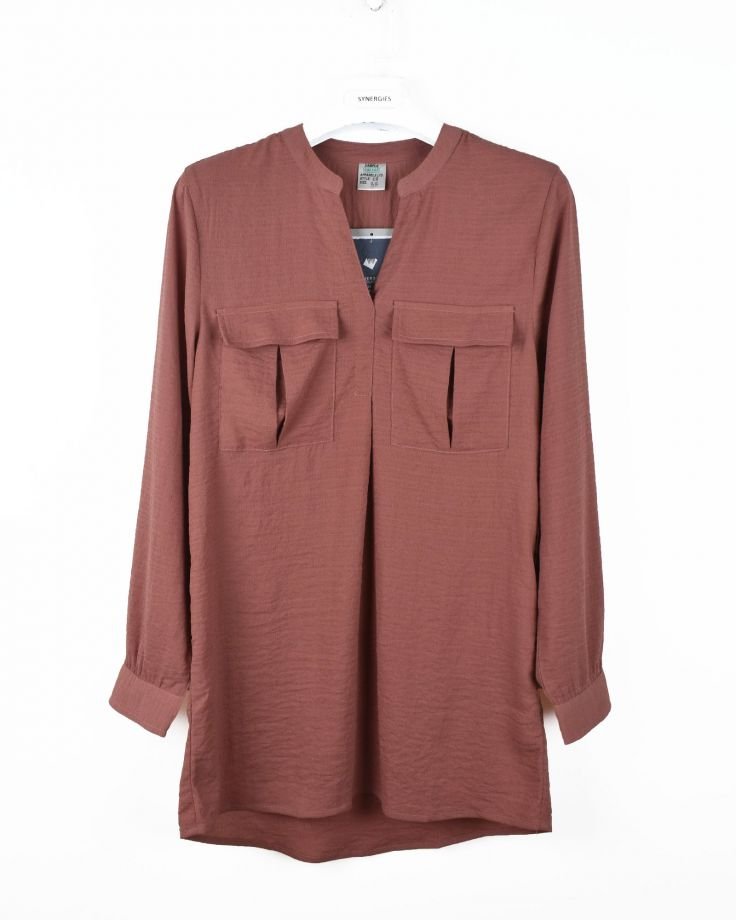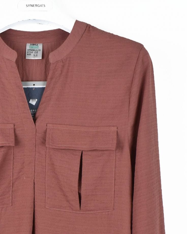 | STYLE DESCRIPTION | Collared Blouse with Long Sleeves Featuring Front Patch Pockets with Flaps | ||